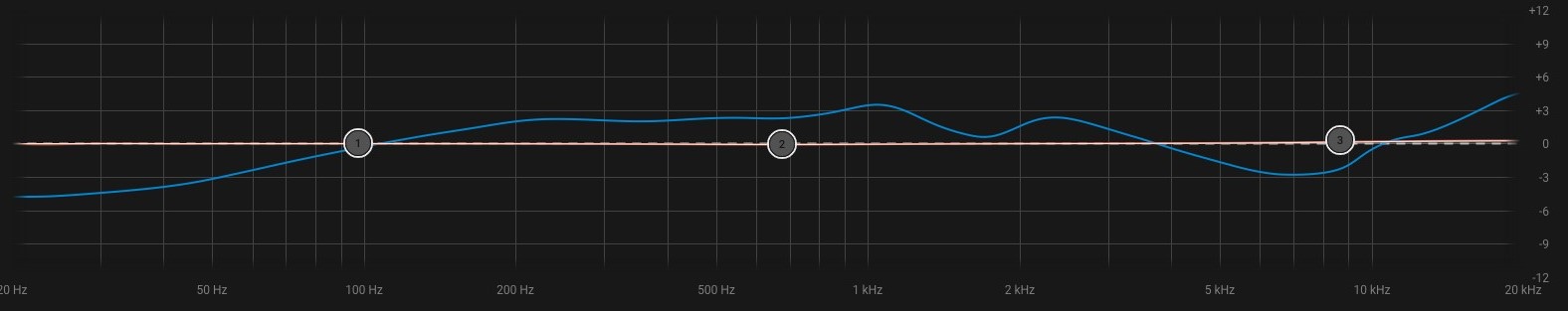 Sono qui disponibili tre bande di equalizzatore (da 50 a 400 Hz, da 100 a 5000 Hz e da 2 kHz a 15 kHz), per correzioni manuali, ognuna delle quali ha un gain da -12 a +12 dB, Q da 0,20 a 20, con modalità Bell. La prima e la terza banda possono essere usate come Shelf.