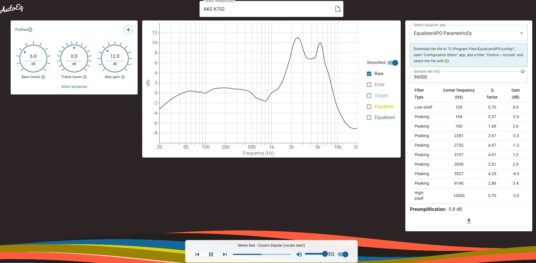 Autoeq è un app su web che applica la curva di Harman a qualsiasi cuffia misurata, con indicazioni relative ai punti di equalizzazione.