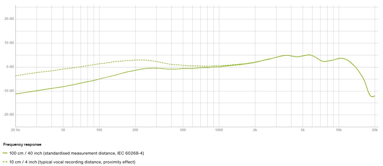 La risposta in frequenza di MTP 5 ha un andamento adatto alla voce: a 10 cm c’è una lieve esaltazione sui 200 Hz, seguito da un dolce incremento fino a 4 kHz e un secondo picco vicino ai 6 kHz. L’effetto di prossimità è piuttosto evidente nel corpo della voce maschile, ma non così pronunciato da sentire le basse frequenze rimbombanti. Aiuta il pattern polare cardioide, con una ottima reiezione a 180 gradi (posteriormente alla capsula) fino 2 kHz. Sopra i 16.kHz, il pattern tende a diventare quasi ipercadioide, ma sono frequenze troppo alte per infastidire nel live con i rientri (a meno che il cantante sia rivolto verso i piatti della batteria…). L’impedenza di uscita si attesta a 280 Ohm e la sensibilità è pari a 2 mV/Pa, -54 dB V/Pa. Il connettore XLR è placcato oro. Rispetto agli altri microfoni MPT per la voce, MTP 5 esibisce una risposta in frequenza più vivace sulle alte frequenze. Non è quindi un progetto derivato.