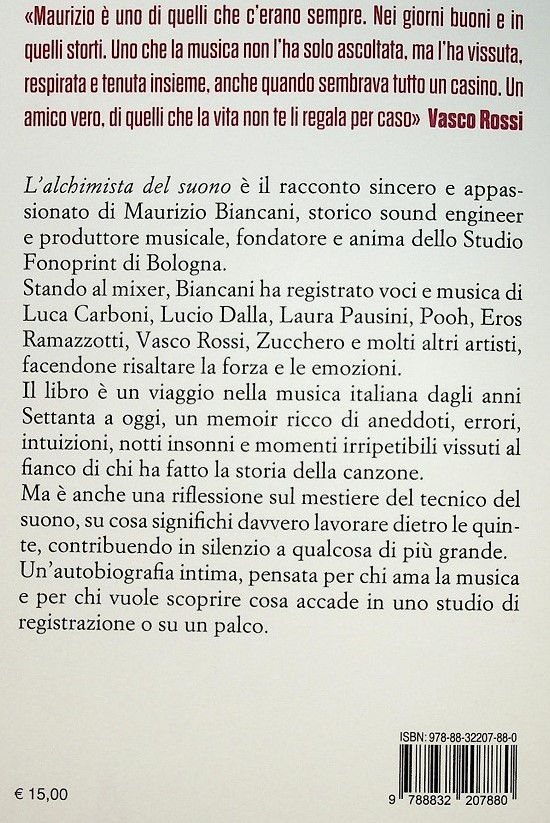 Maurizio Biancani metto nero su bianco la sua incredibile esperienza nel mondo della discografia italiana, raccontando il dietro le quinte del suo lavoro con Vasco Rossi e Lucio Dalla, ma non solo. Un'autobiografia a volte intima, più spesso dentro lo studio Fonoprint, con Bologna sempre presente.