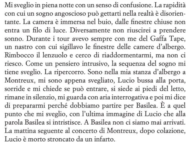 La seconda parte dei racconti è dedicata al rapporto con Lucio Dalla, sempre molto intenso, che ha sicuramente intaccato la parte più profonda del cuore di Maurizio nel bene e nel male, tanto da portarlo a chiudere per sempre il suo lavoro di fonico live dopo la morte improvvisa di Dalla. Nelle pagine che seguono, Maurizio Biancani racconta anche degli Stadio, dei Pooh, dei dischi di Lucio Dalla e della nuova Fonoprint, con una chiusura dedicata all'insegnamento ma, da quello che percepiamo leggendolo, anche dalla melanconia di un periodo che è passato, perché il mondo è cambiato (assieme alla tecnologia). Sono molti i musicisti, i produttori, i sound engineer citati nel testo: c'è il meglio di un periodo storico di grandissimo splendore nel mondo della registrazione e della produzione discografica.