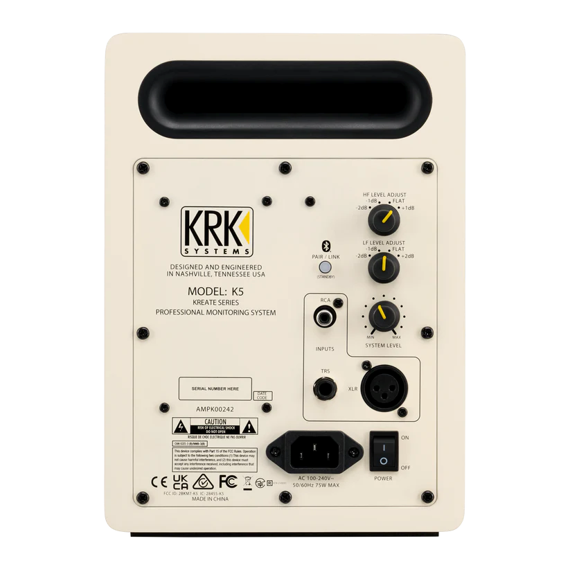 Il parco connessioni nel pannello posteriore è composto da tre ingressi audio analogici rispettivamente su prese XLR bilanciato, TRS Combo da 1/4" e Pin/RCA sbilanciato. Il KRK Kreate 5 dispone di supporto Bluetooth Classic 5.3 TWS A2DP. La gamma Kreate è completata dall’apripista 3 (venduto a coppia) e dotato di woofer da 3” e la punta di diamante rappresentata dal modello 8, con cono da 8”.