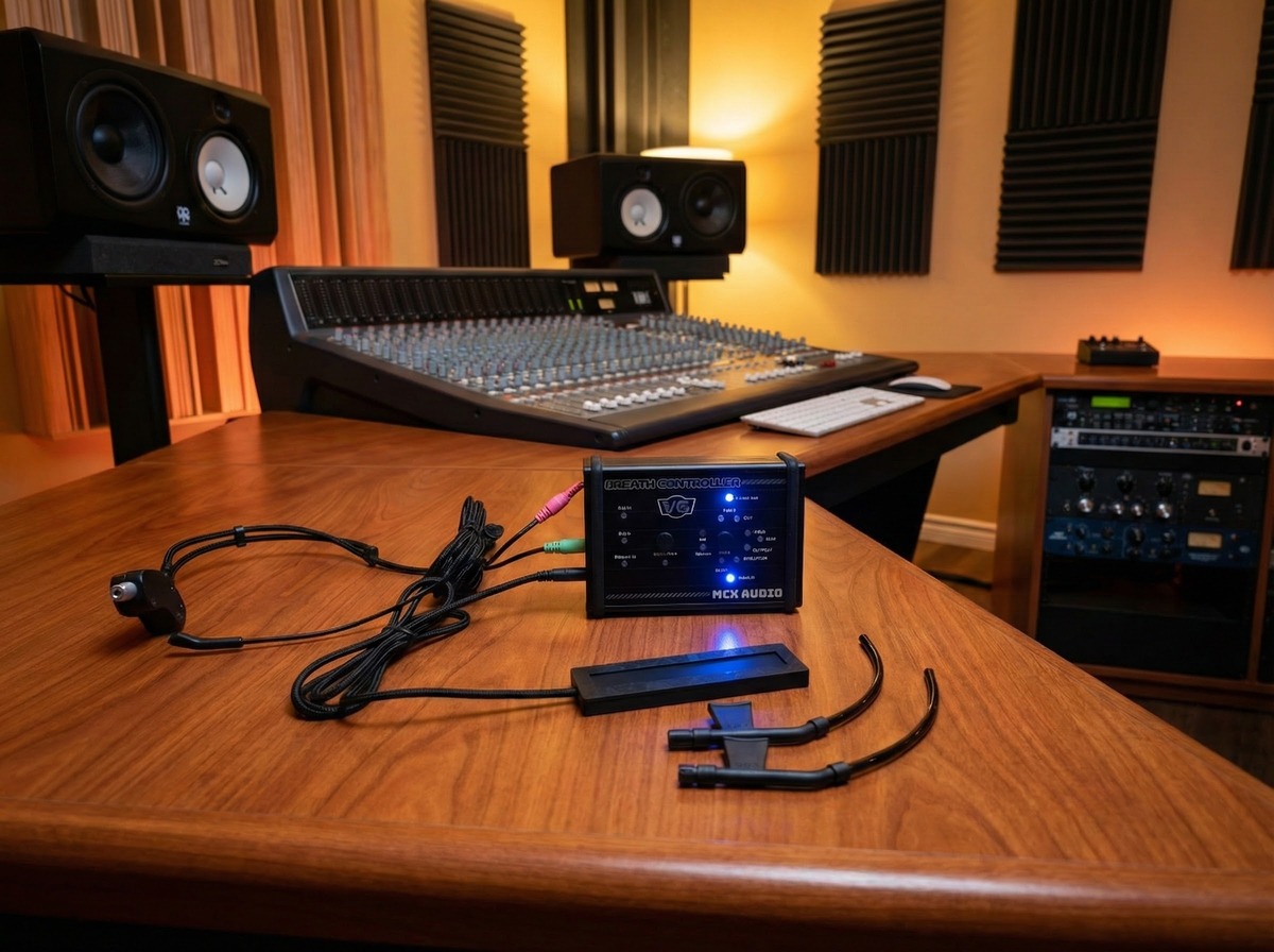 In una pratica valigetta è fornito tutto l’occorrente per collegare MCX Audio V6: oltre al modulo in formato desktop, troviamo infatti un Ribbon Controller, il Breath Controller in formato headset con due boccagli di ricambio e i cavi per il collegamento.