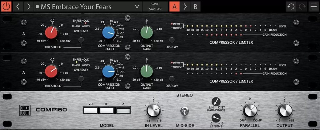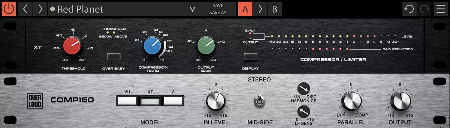 Più caldo e armonicamente più denso, con una presenza migliorata sulle basse frequenze e un'estremità inferiore più piena. La versione XT offre un suono più morbido e versatile rispetto al VU. Offre un'estremità inferiore più ricca e una struttura armonica eccellente, grazie al trasformatore opzionale installato nel modello di riferimento. La versione XT è inoltre dotata del controllo Overeasy, che abilita la curva di compressione soft-knee.