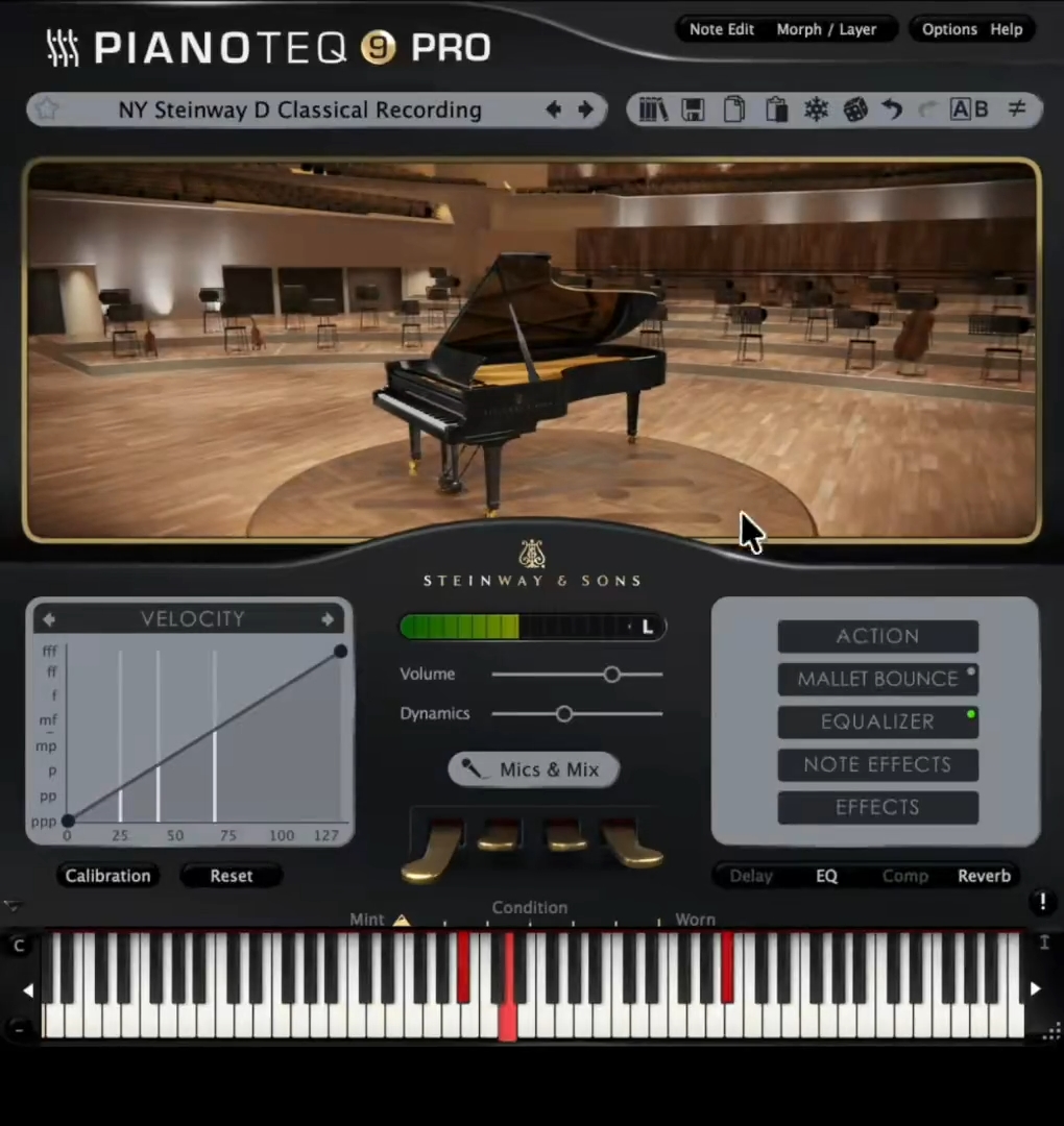 Nell’interfaccia, il menu dedicato alla ripresa consente ora di posizionare fino a 8 microfoni simultaneamente nello spazio 3D in qualsiasi punto dello strumento. Il pannello del mixer di questo menu è stato reso più tradizionale come aspetto, per gestire più agevolmente le uscite stereo e multicanale. Altri miglioramenti riguardano l’introduzione del pedale Thunder per il fortissimo, un cursore Hammer Tone per dosare il punto di attacco del suono, e negli effetti l’introduzione di un Delay ping-pong e uno slider nel riverbero per dosare il Low Cut.