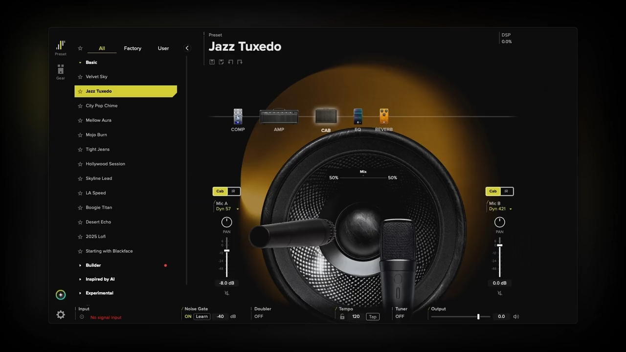 Inoltre, l’Adaptive Circuit Modeling rendo il suono ancora più dinamico, in grado di reagire al plettro, alla dinamica e al volume come un vero amplificatore a valvole. L’Harmonic Fingerprinting mantiene i dettagli armonici unici che definiscono il carattere di ogni amplificatore, mentre il Power Amp Saturation ricrea la compressione e la distorsione naturali delle vere valvole di potenza, per un suono ricco e tridimensionale.