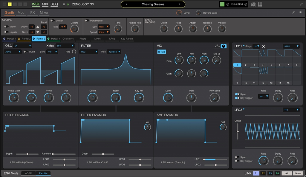 Il primo elemento di rilievo per chi scrive in ZENOLOGY GX è l’interfaccia completamente rivista rispetto alle precedenti versioni. Finalmente non bisogna aguzzare la vista per andare a intervenire sui singoli parametri di ogni parziale dell’engine ZEN-Core.